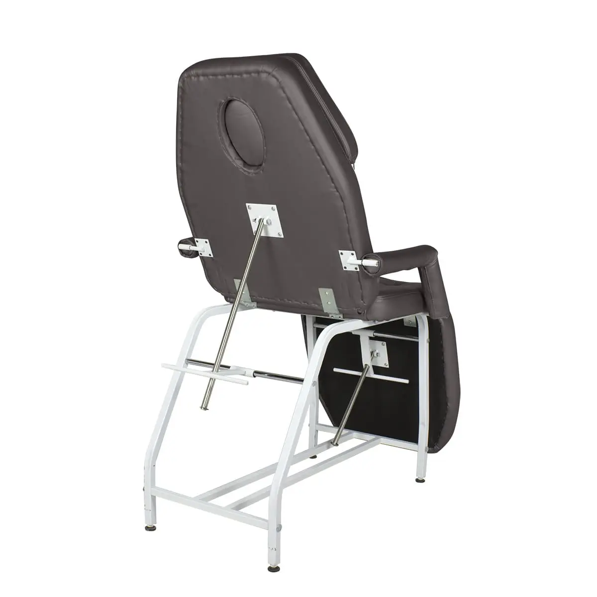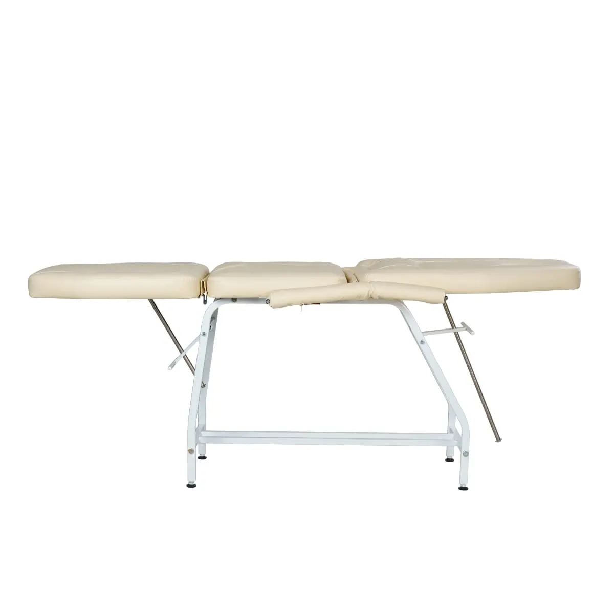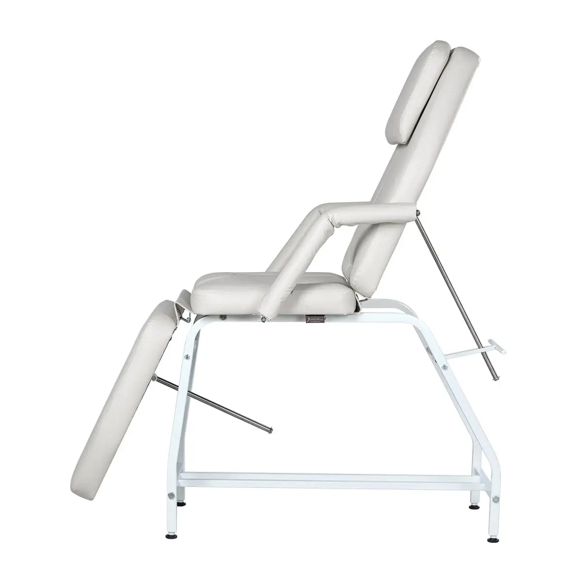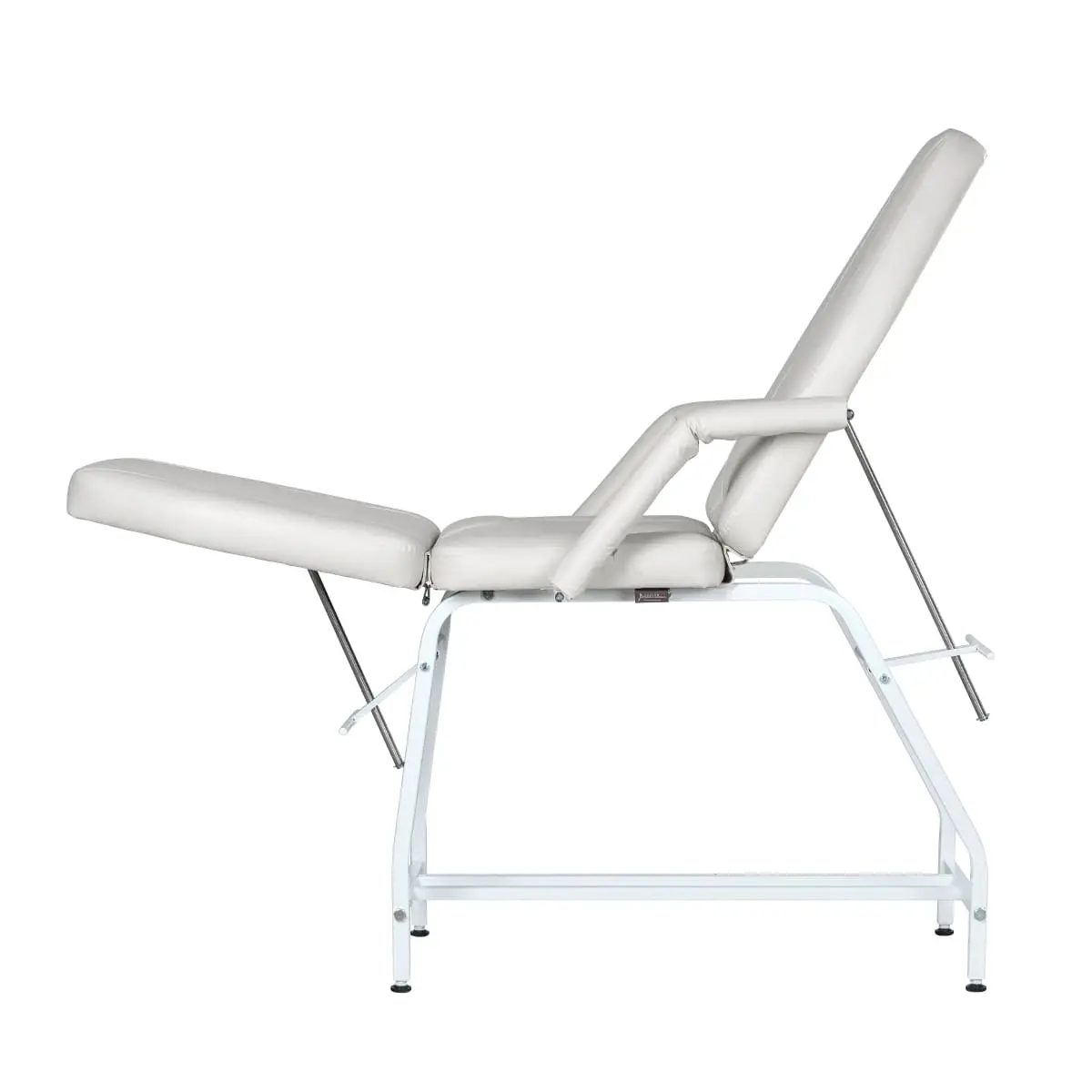 При обустройстве кабинета оборудование должно гармонировать с палитрой интерьера, поэтому мы предлагаем купить косметологическую кушетку Релакс в одном из цветов складкой программы (белый матовый, серебро, слоновая кость), или заказать в другом цвете или комбинации цветов из каталога обивочных материалов. Практичная конструкция косметологической кушетки Релакс от магазина МЭДИСОН позволяет оказывать широкий спектр как косметологических, так и массажных услуг. В спинке имеется отверстие для лица. Положение спинки и ножной части регулируется механически.