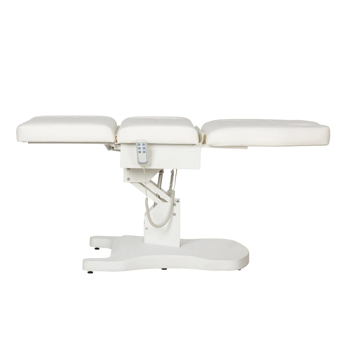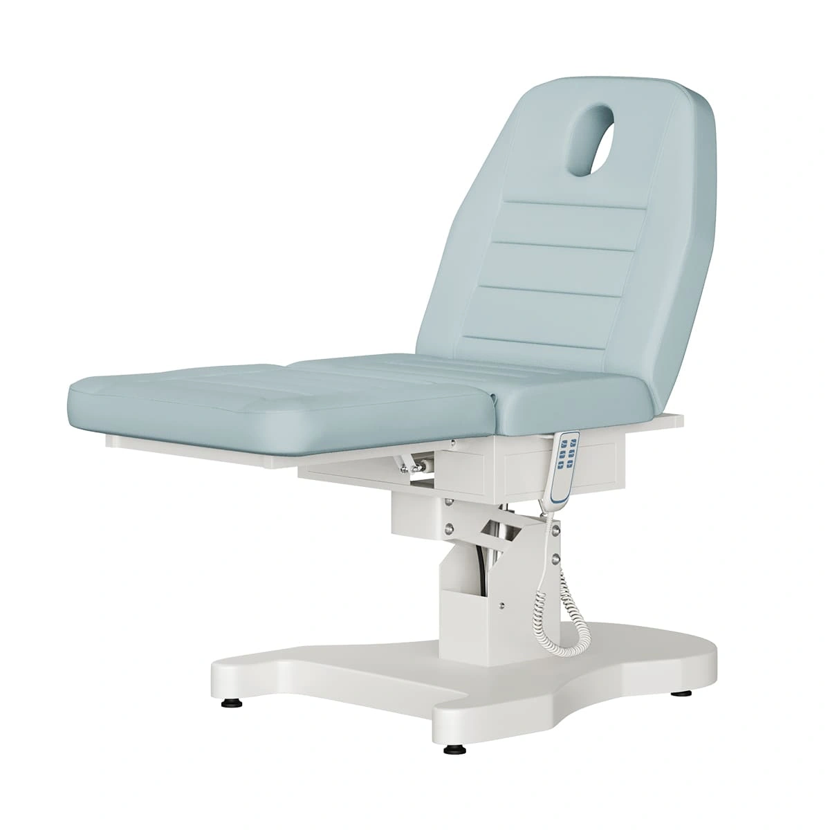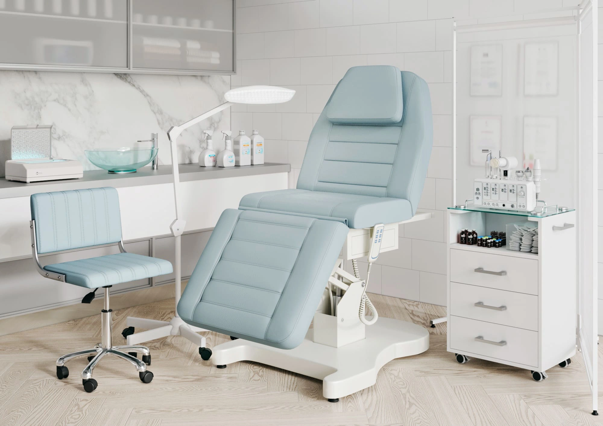 Функциональная косметологическая кушетка Гранда – это профессиональное оборудование высокого уровня. Подъем кресла, регулирование положения спинки и подножки осуществляется с помощью трех электромоторов. Для управления электроприводом предусмотрен удобный пульт, с держателем боковой части сиденья. Кушетка имеет увеличенную грузоподъемность, при этом основание спроектировано максимально удобно для работы мастера, не мешает при проведении процедур. Ширина кушетки больше стандартных размеров, отсутствуют подлокотники. Эта кушетка обеспечит необходимый комфорт клиентам и мастерам в процессе различных косметологических и массажных процедур. Обивка кресла устойчива к воздействию влаги, косметических и дезинфицирующих средств.