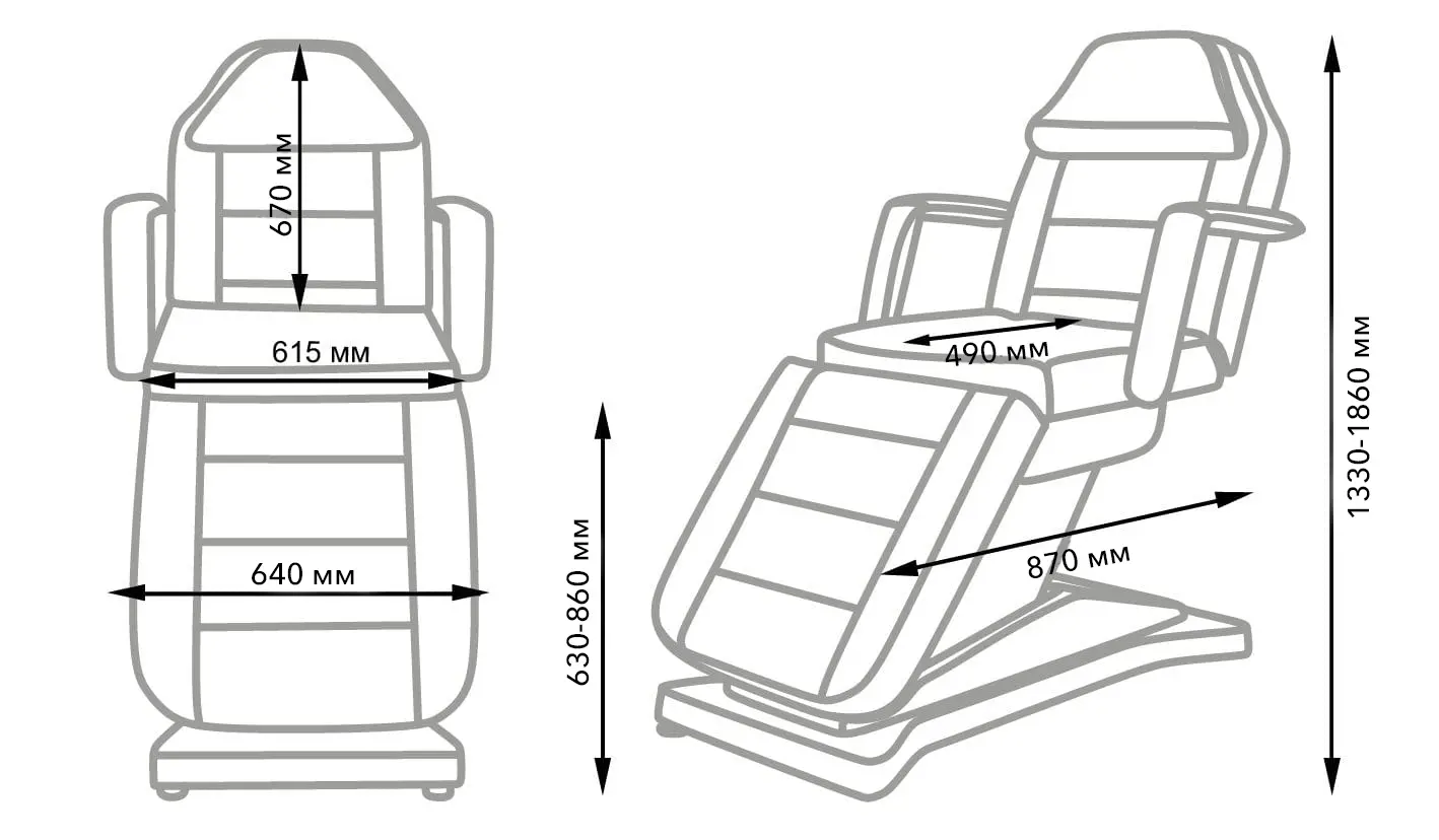 • Размеры (ВхШхД): 630 – 860х870х1330-1860 мм