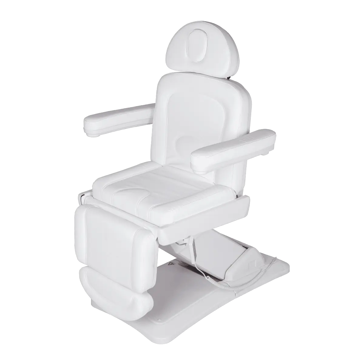 Комплектация: основание на подпятниках, каркас, мягкие элементы (сиденье, спинка и подушка под ноги, подголовник с отверстием для лица и подлокотники), электропривод 3 мотора, пульт управления.