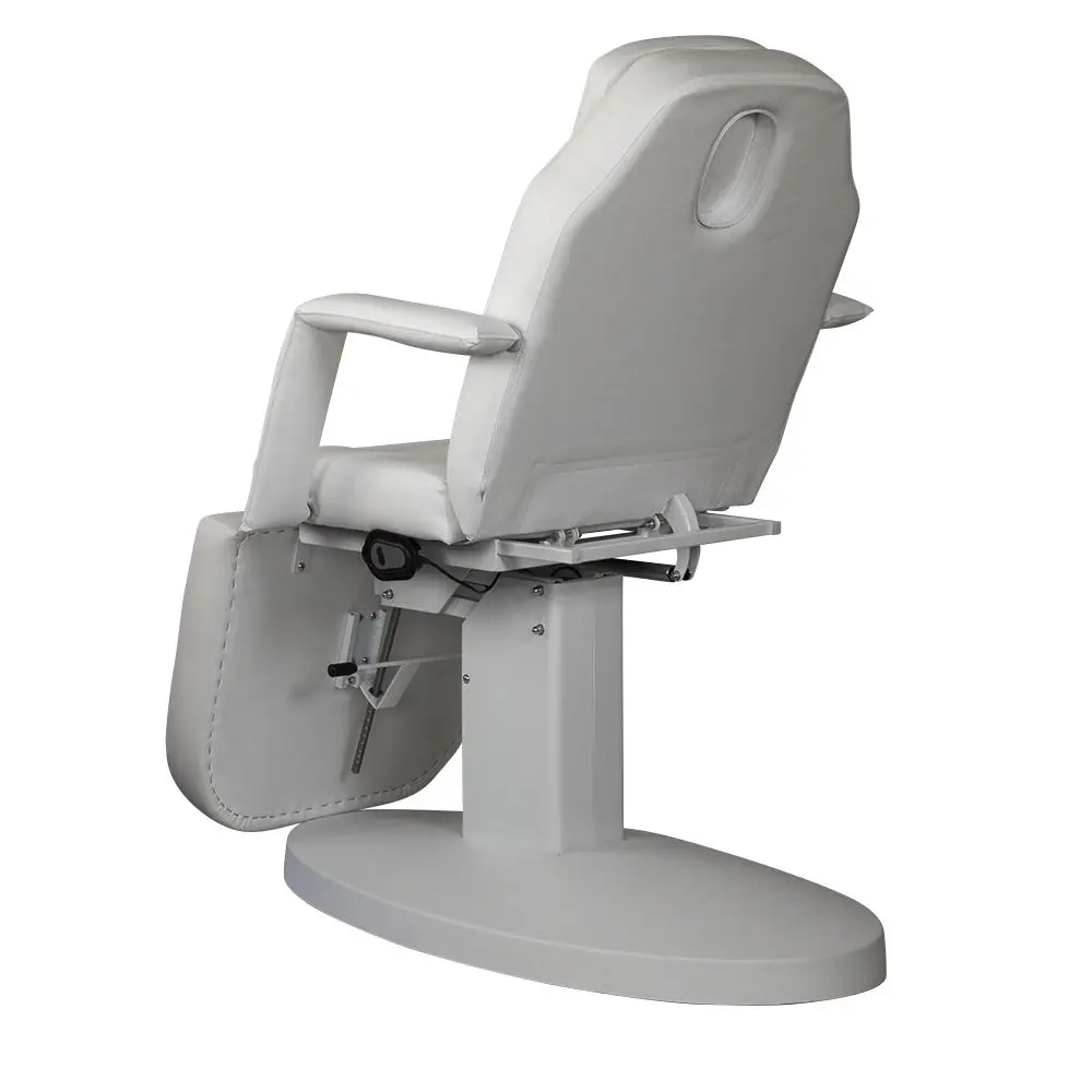 Высота меняется с помощью электропривода. Управление осуществляется с удобного пульта. Педикюрное оборудование можно трансформировать в кушетку, разложив до горизонтального положения. Подголовник и подлокотники можно снять при необходимости. В спинке есть специальное отверстие для лица. Благодаря этому кресло можно использовать в массажном кабинете.