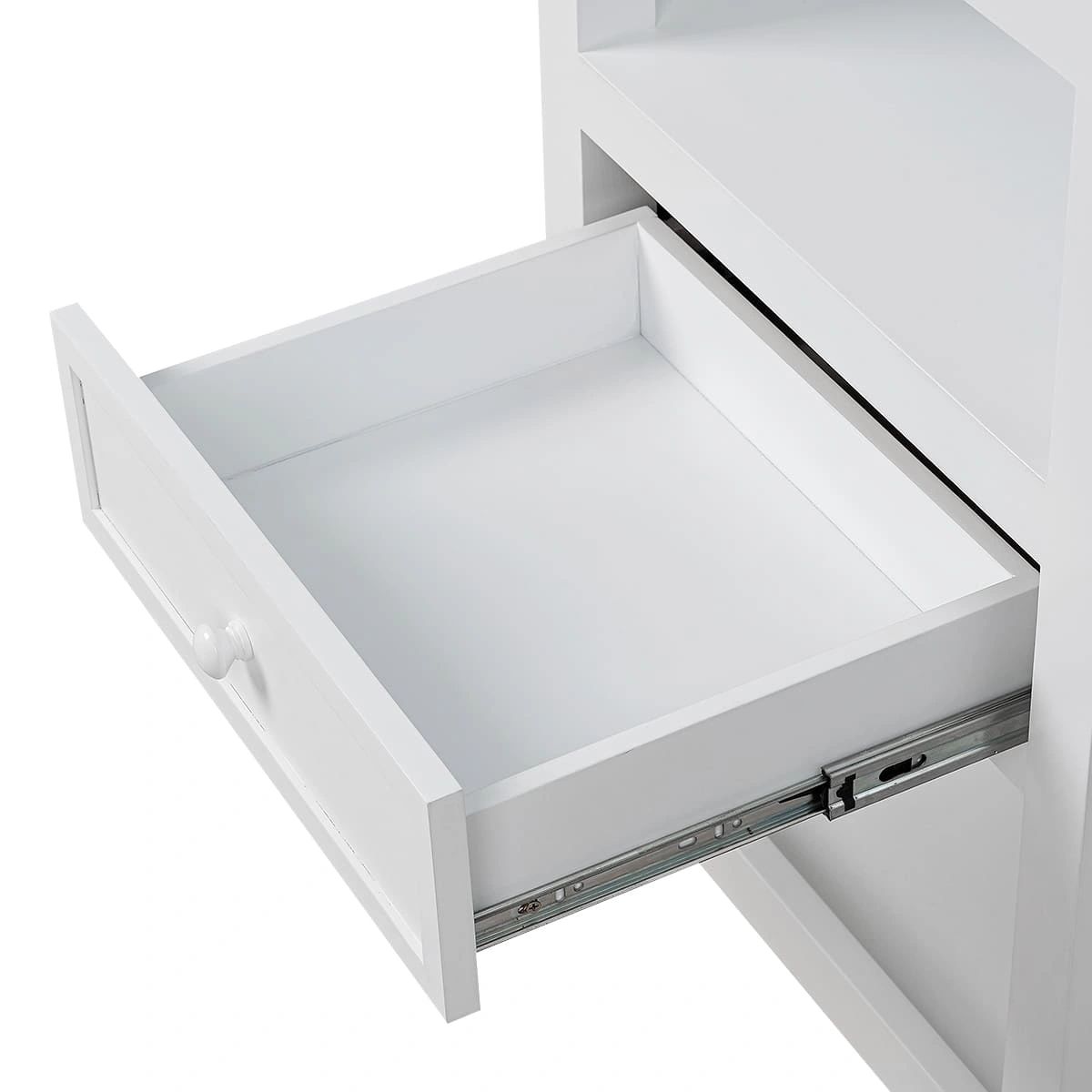 Комплектация: 1 выдвижной ящик и 3 открытые полки; нижняя и верхняя полки с бортиками; в центре верхней полки съемный столик; ручка для удобного перемещения; 4 опорных колеса; 2 цвета.