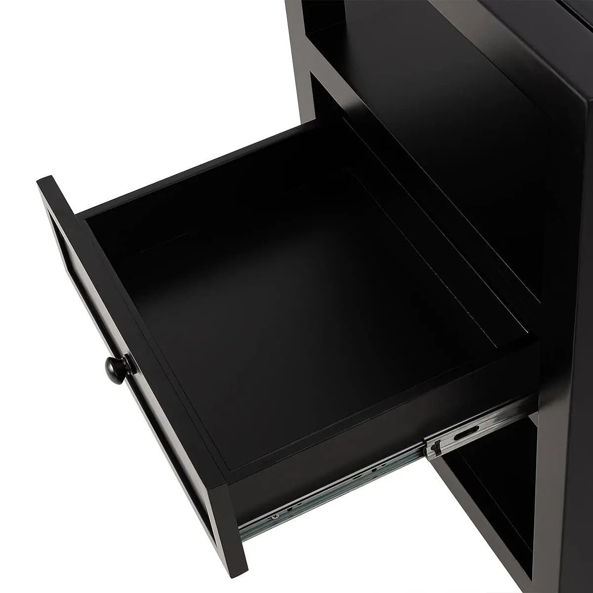 Имея довольно компактные размеры, конструкция столика позволяет ему выполнять сразу множество функций. В закрытом выдвижном ящике можно хранить расходные материалы и мелкие аксессуары. Три открытые полки на разном уровне, верхняя и нижняя обрамлены бортиками со всех сторон, которые надежно защищают размещенные на них предметы от падения.