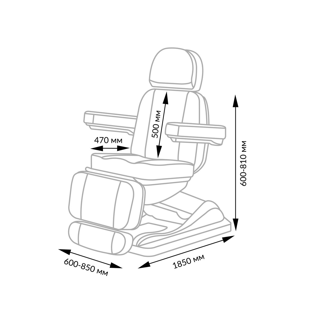 • Размеры (ВхШхД): 600-810х850х1850 мм
