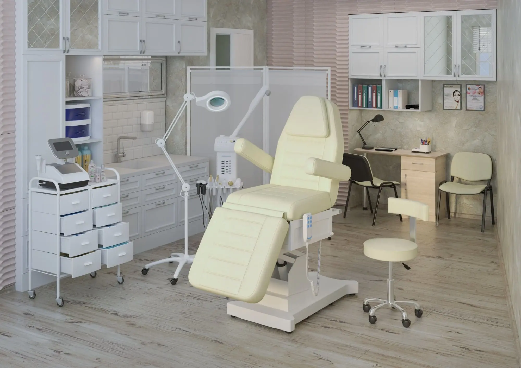Крепление: кронштейн крепится к столу косметолога или тележке с помощью струбцины.