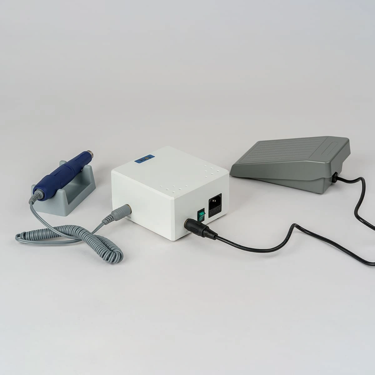 Комплектация: блок, ручка с микромотором, подставка под ручку, ножная педаль.