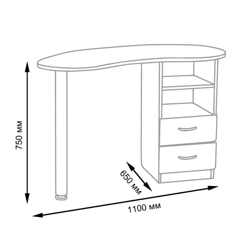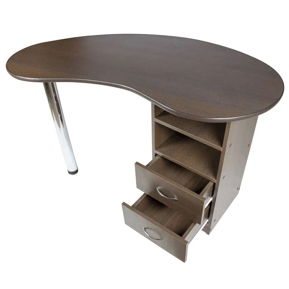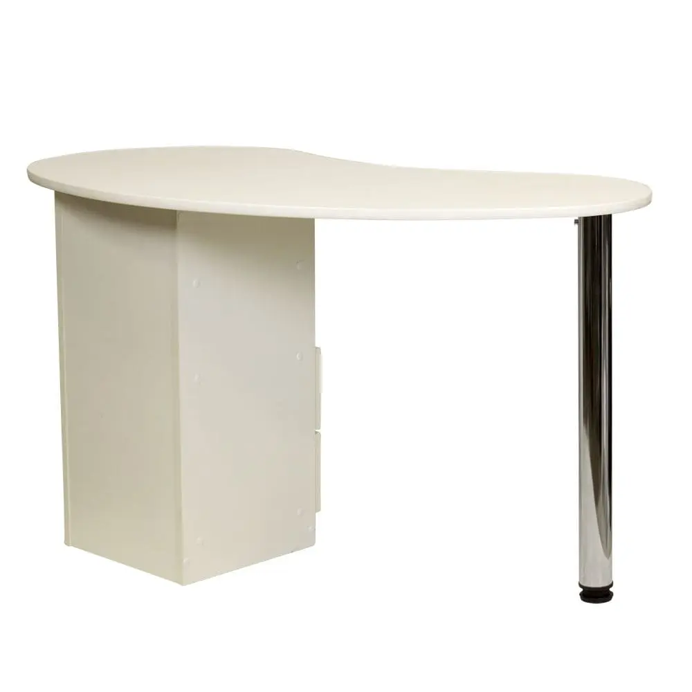 Маникюрный стол Катрин от производителя МЭДИСОН имеет удобные размеры и продуманную форму для правильной организации рабочего места мастера по маникюру. Для его производства применяются листы прочной ламинированной ДСП, поверхность которой устойчива к обработке дезинфицирующими средствами. Цвет ЛДСП можно выбрать из доступных 14 вариантов. Столешница с закругленными углами, со стороны специалиста плавный изгиб для удобства во время работы. Для защиты от механических повреждений столешница окантована гибким пластиком.