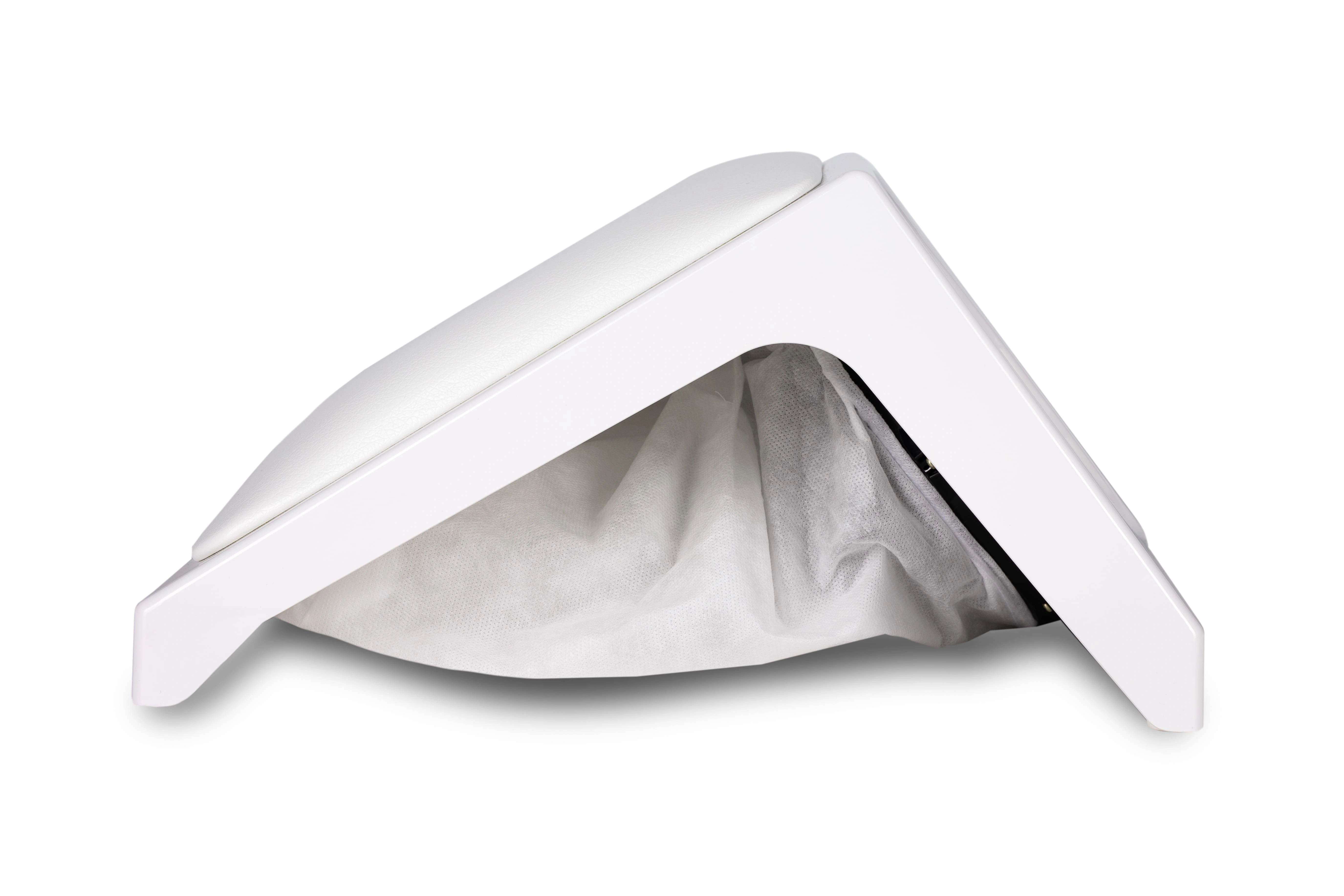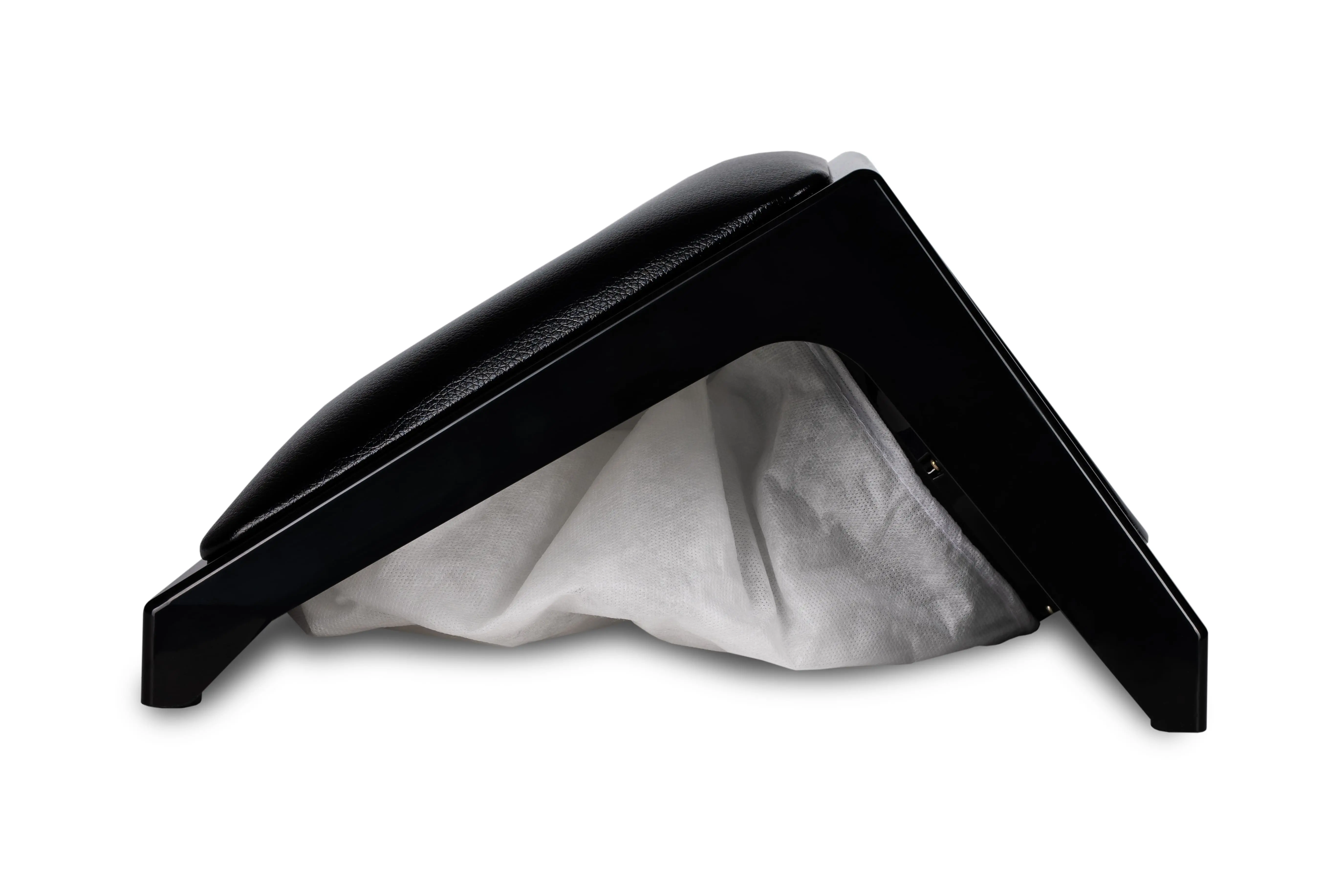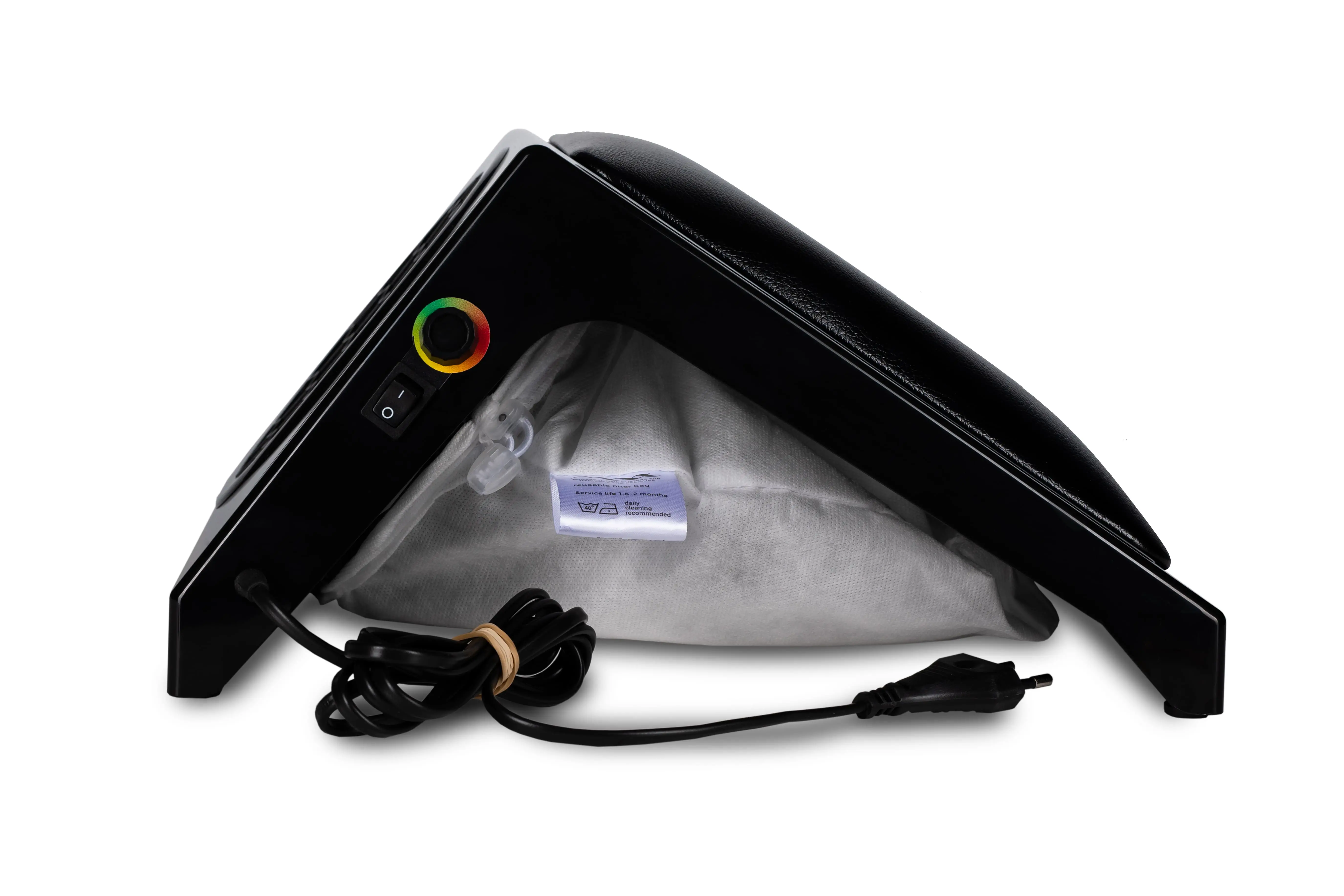На основании маникюрной вытяжки Ultimate 7 с подушкой предусмотрены прорезиненные ножки, за счет которых пылесборник прочно устанавливается на столе и не сдвигается в процессе использования. Ножки встроены глубоко в основание, поэтому почти незаметны. В комплекте с устройством поставляется два многоразовых мешка для сбора пыли, которые прослужат около 2 месяцев при условии своевременной чистки. Работает техника с минимальным уровнем шума. Предлагается в двух цветах – черном и белом. Поэтому можно легко выбрать вариант под интерьер маникюрного кабинета.