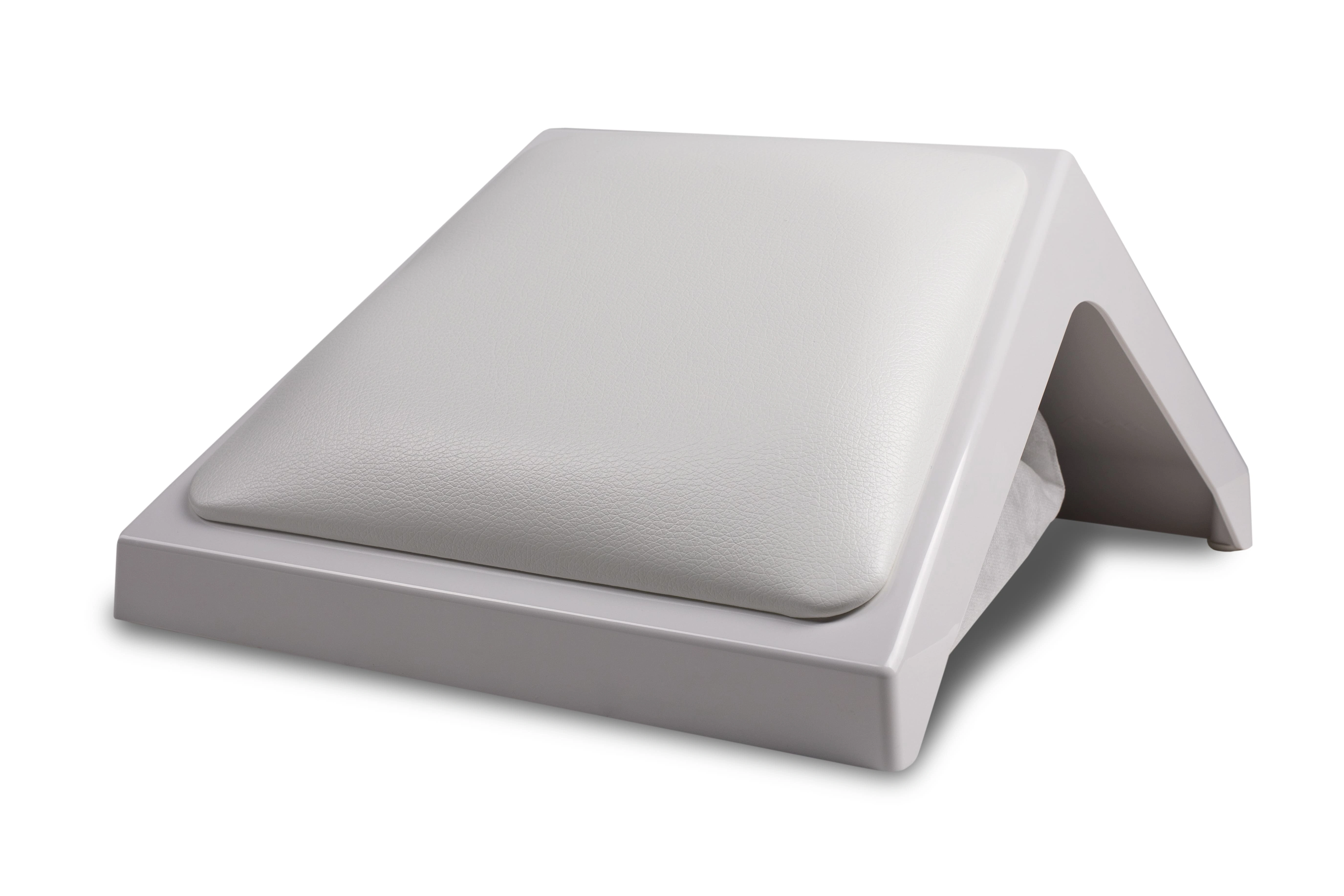 Пылесборник оборудован зоной, предотвращающей сползание рук клиента. Она выглядит, как подушка из пластика. За счет ромбовидного рисунка подушка гармонично вписывается в дизайн пылесоса. Весит техника чуть больше 2 кг, поэтому проблем с перемещением не будет. Это особенно актуально, если мастер выполняет маникюр на дому клиентов.