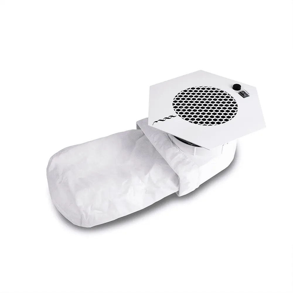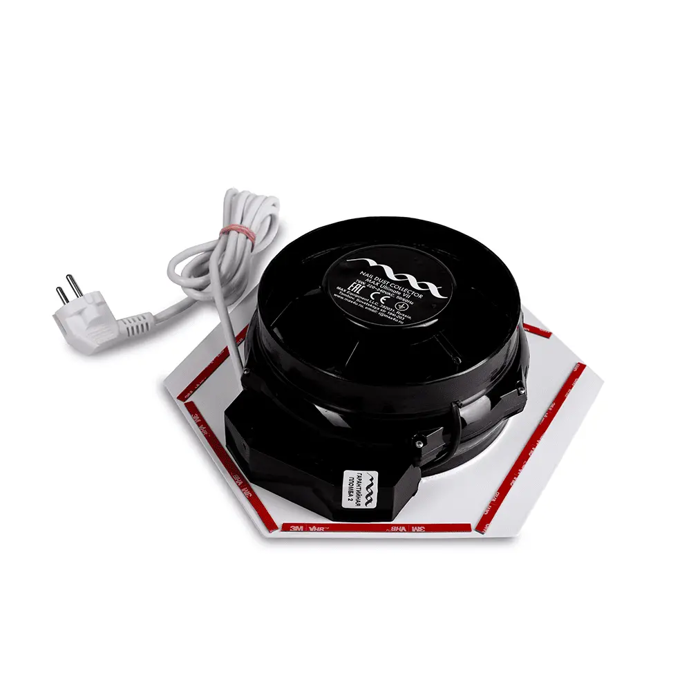 Врезная вытяжка Ultimate 7 – это мощный пылесборник, предназначенный для мастеров маникюра, принимающих клиентов в салонах красоты или выезжающих на дом. Изделие обладает продуманным дизайном, выглядит стильно, предлагается в двух цветовых решениях – черном и белом, поэтому можно легко подобрать вариант под интерьер кабинета. В корпусе установлен мощный вентилятор с 9 лопастями, которые прокачивают больше воздуха, чем аналогичные устройства других производителей. Кроме того, лопасти установлены близко к краю крыльчатки, поэтому вентилятор всасывает большее количество ногтевой пыли.