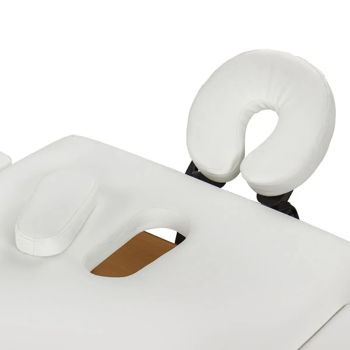 Массажная кушетка позволит расслабиться и насладиться сеансом массажа. Для удобства рук клиента предусмотрены съемные подлокотники. С помощью навесного подголовника можно увеличить рабочую зону кушетки. Для комфортной работы мастера предусмотрена регулировка высоты кушетки. Благодаря подъему ножного элемента, делать массаж ног стало еще удобней. Для удобства транспортировки, кушетка складывается в форму дорожного чемодана.