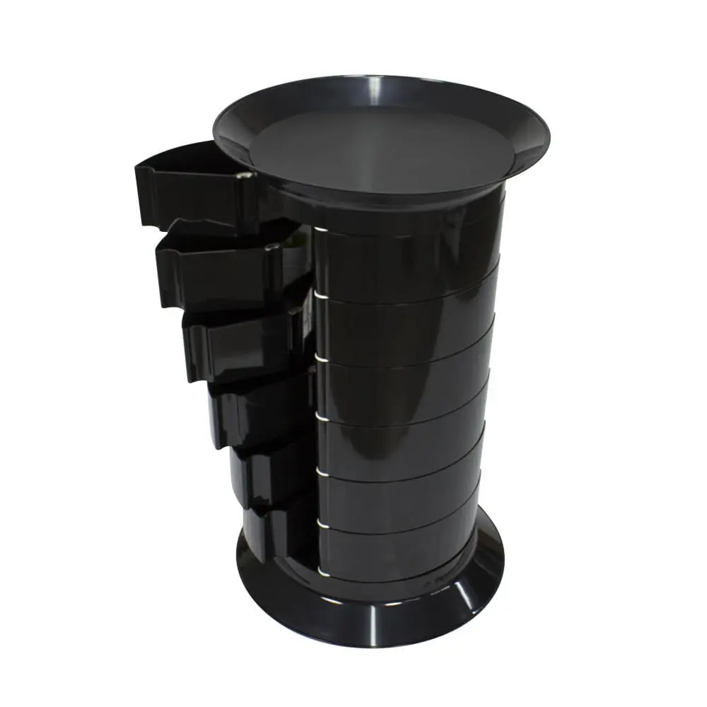 Тумба универсальная GiroCo Catalina black – компактное, но вместительное оборудование. В комплекте 18 выдвижных ящичков. Перемещать тумбу можно благодаря шести маневренным колесам. Универсальный цвет тумбы и необычный дизайн впишется практически в любой интерьер салона красоты.