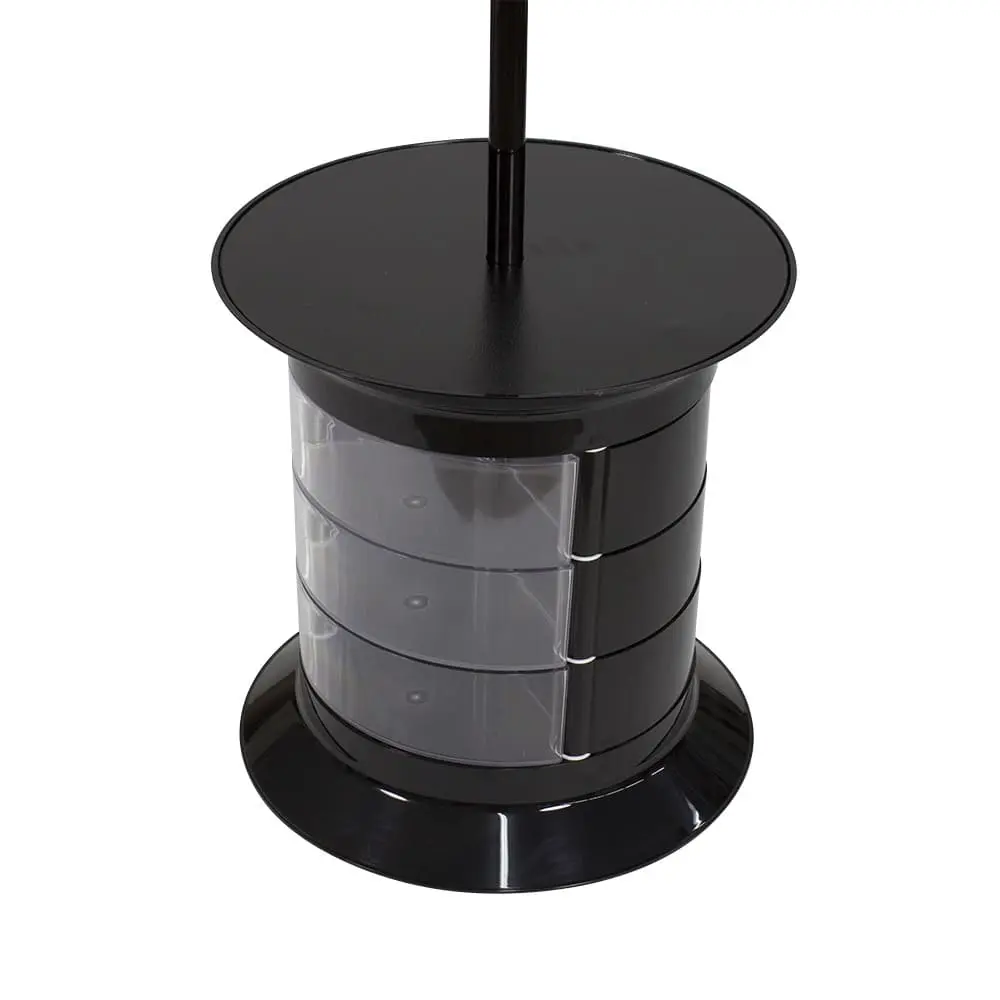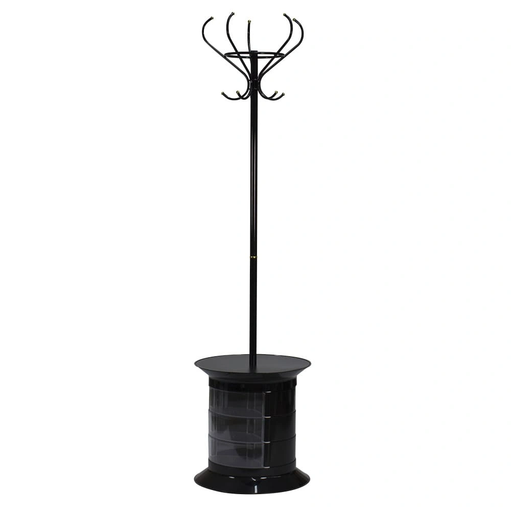 Большой гардеробный шкаф обычно не очень удобная мебель для салона. Поэтому чаще всего выбирают компактное оборудование. Вешалка для одежды GiroCo Raul Plus black не займет много места и сохранит привлекательный вид вещей клиентов. Кроме того, мебель для холла дополнена функциональной тумбой. Колеса у основания отвечают за мобильность оборудования.