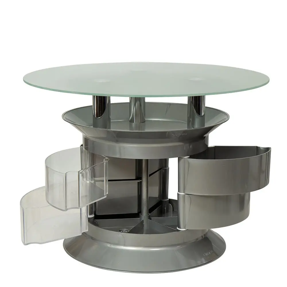 Журнальный столик GiroCo Benito Plus gray выполнен в необычном дизайне. Оборудование подойдет для хранения интересных журналов и листовок или как элемент декора. Компактная мебель для холла достаточно вместительна благодаря шести ящичкам. Мобильность столика достигнута с помощью маневренных колес.