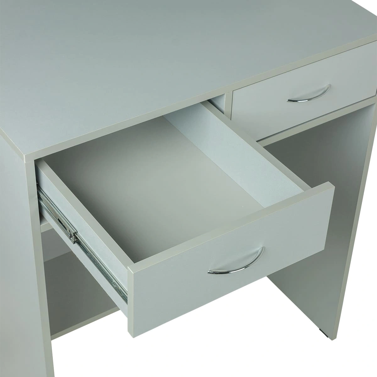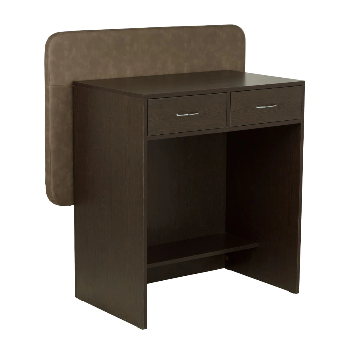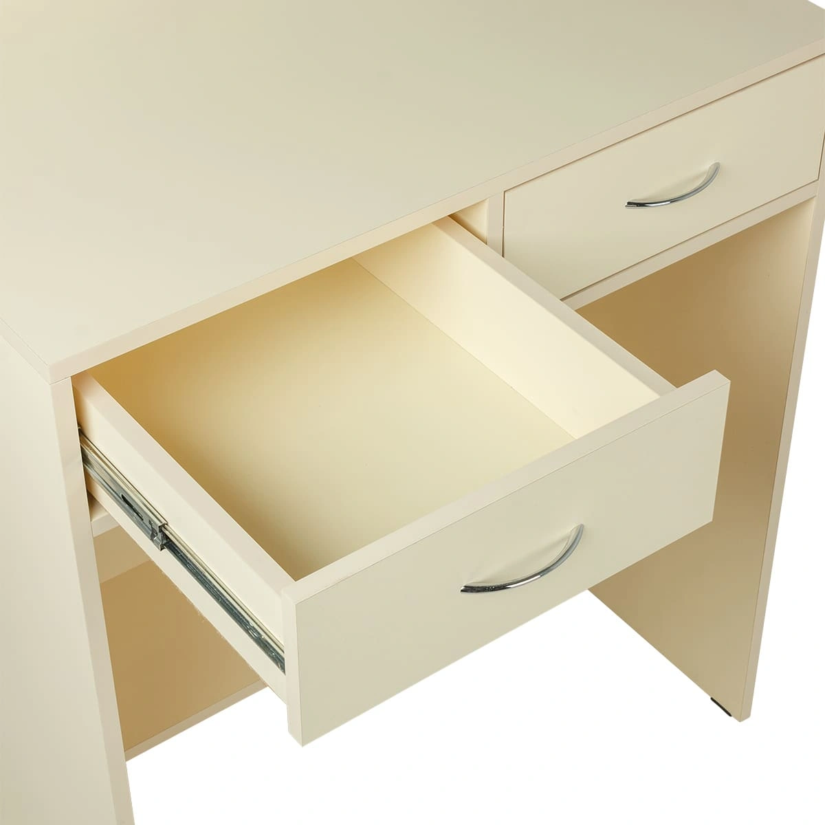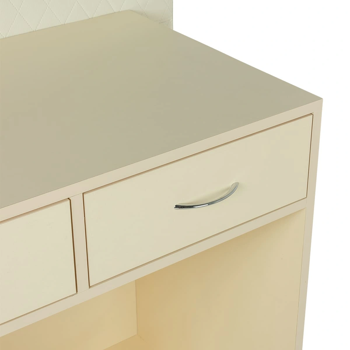Стойка для администратора представляет собой двухстороннюю конструкцию. Внешняя часть, обращенная к клиенту, установлена выше уровня груди клиента. Благодаря этому посетителю не виден рабочий стол администратора и все, что на нем находится. Со стороны работника салона находится стол, на котором можно сложить необходимые документы, установить ноутбук и телефон. В двух выдвижных ящиках достаточно места для необходимых канцелярских предметов и личных вещей.