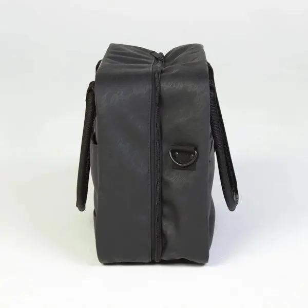 Внутри сумки просторные отделения, разделенные съемным карманом на молнии. Первая половина саквояжа - прозрачные ячейки, во второй половине карманы из сетки. Благодаря такой системе хранения все приспособления находятся на виду у мастера, благодаря чему экономится время на поиске нужного средства. В закрытом виде содержимое не просыпается и не деформируется. Для удобной транспортировки в сумке предусмотрен ремень и практичная ручка.