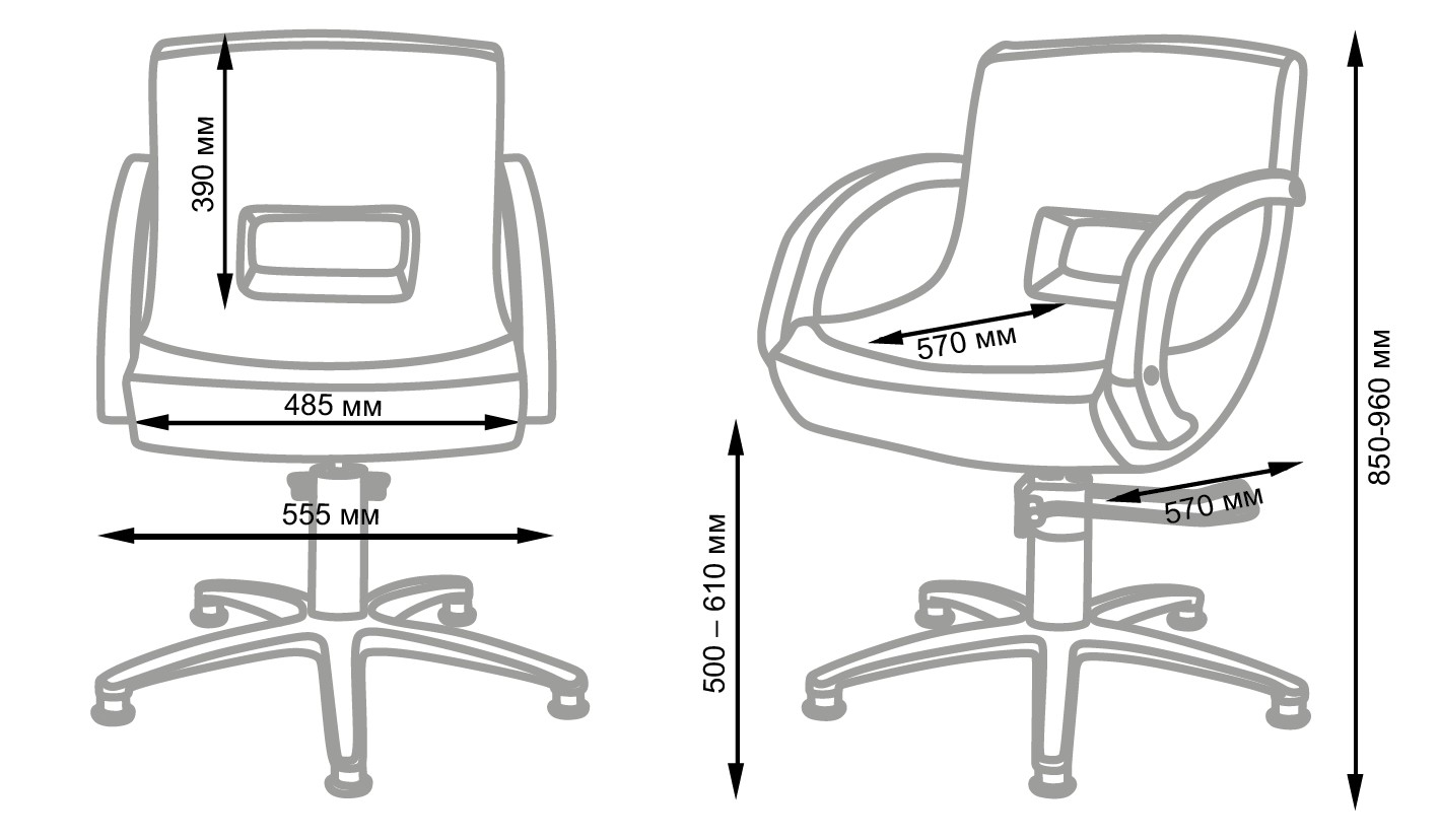 Комплектация: кресло, подлокотники из полированного металла, основание, гидравлический подъемник.