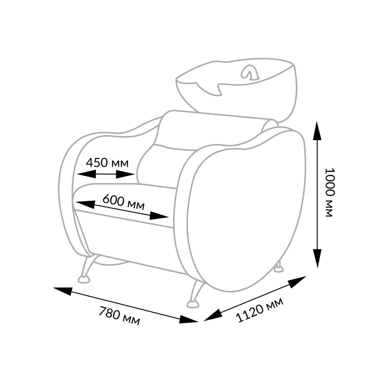 Стильная парикмахерская мойка с увеличенной шириной посадочного места - подойдёт для клиентов любого телосложения. Нестандартная изогнутая форма подлокотников - идеально подчеркнет интерьер любого современного салона.