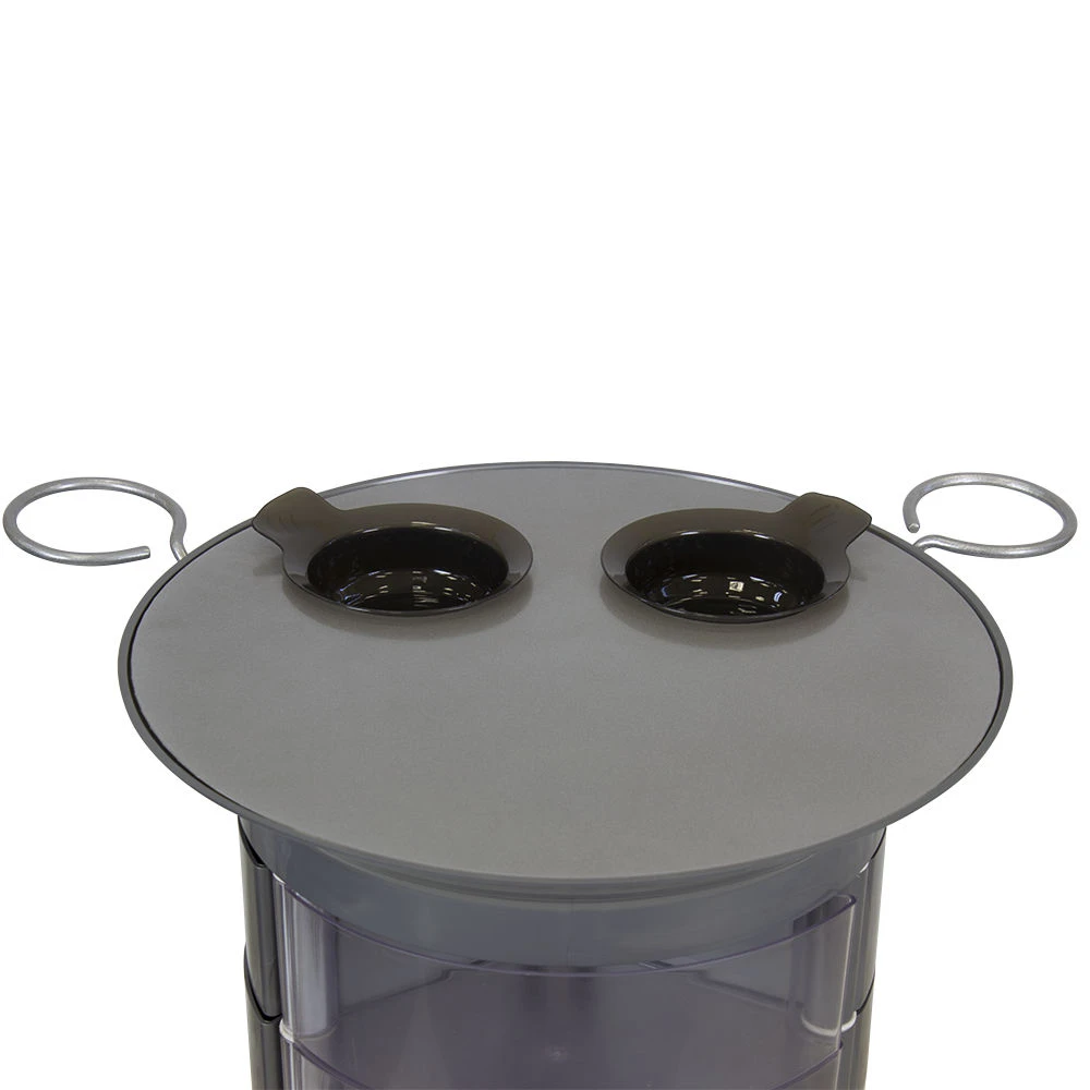 Верхняя крышка – также функциональный элемент оборудования. На поверхности предусмотрены отверстия для чаш и место для инструмента, необходимого во время рабочего процесса. Благодаря своей вместительности и двух держателей для фенов оборудование подойдет для обустройства нескольких рабочих мест. С помощью маневренных колесиков оборудование GiroCo можно с легкостью переместить в любое место.
