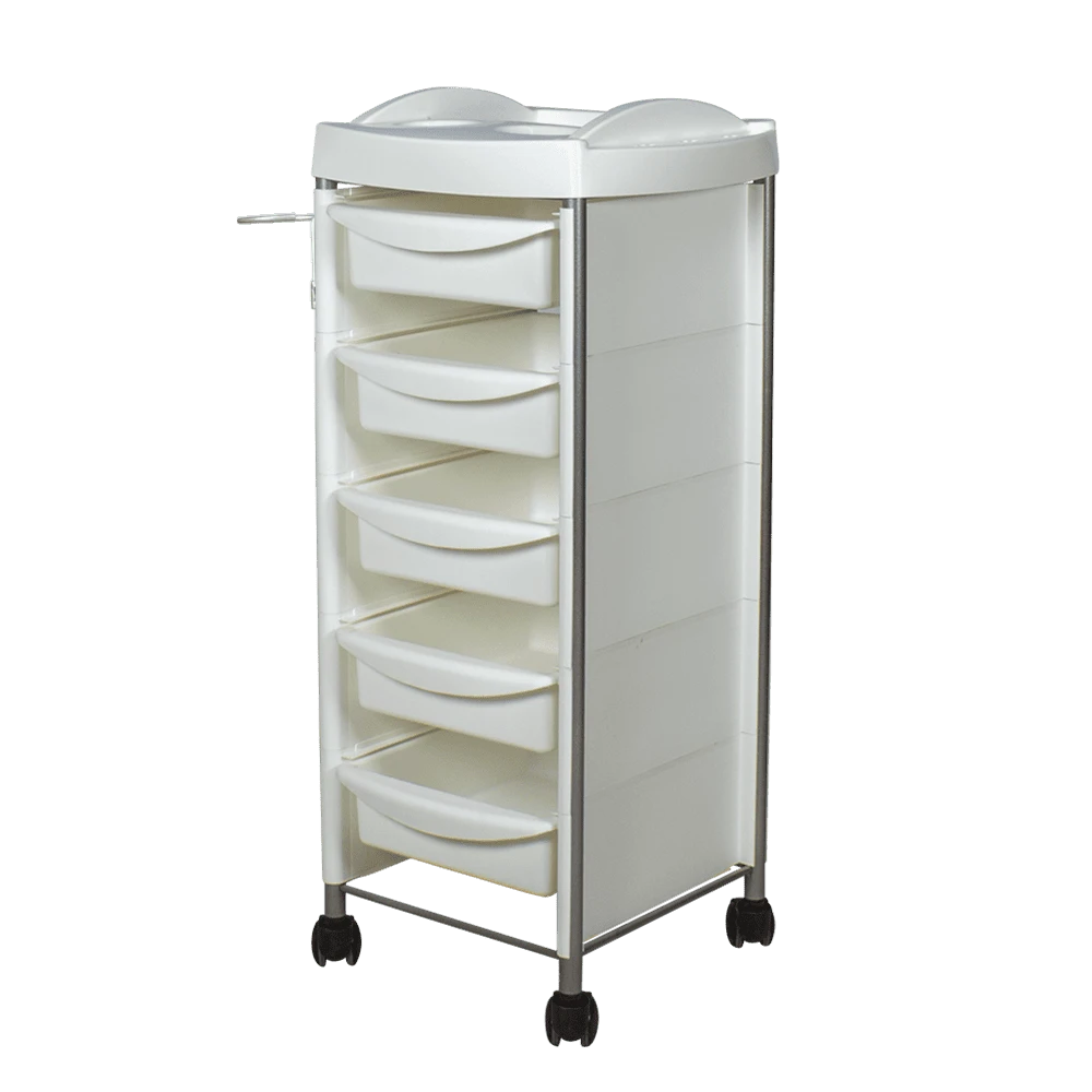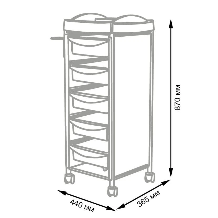 Производитель: Компания МЭДИСОН. Комплектация: каркас на маневренных колесах, пластиковые боковые панели, верхняя крышка, выдвижные ящички (5 шт.), фенодержатель.