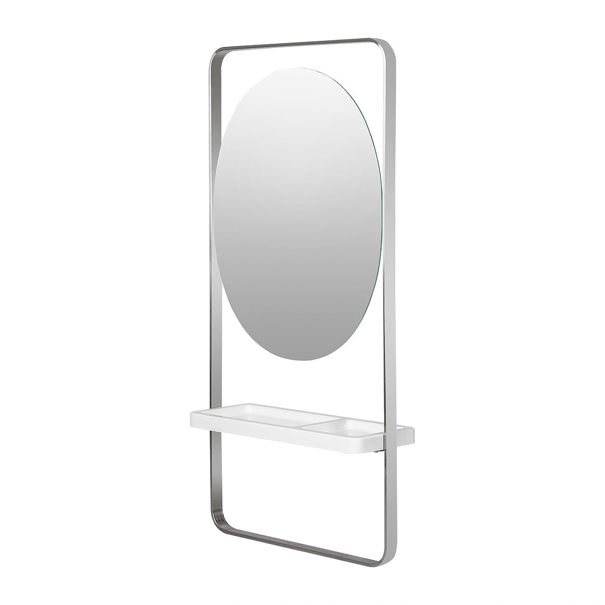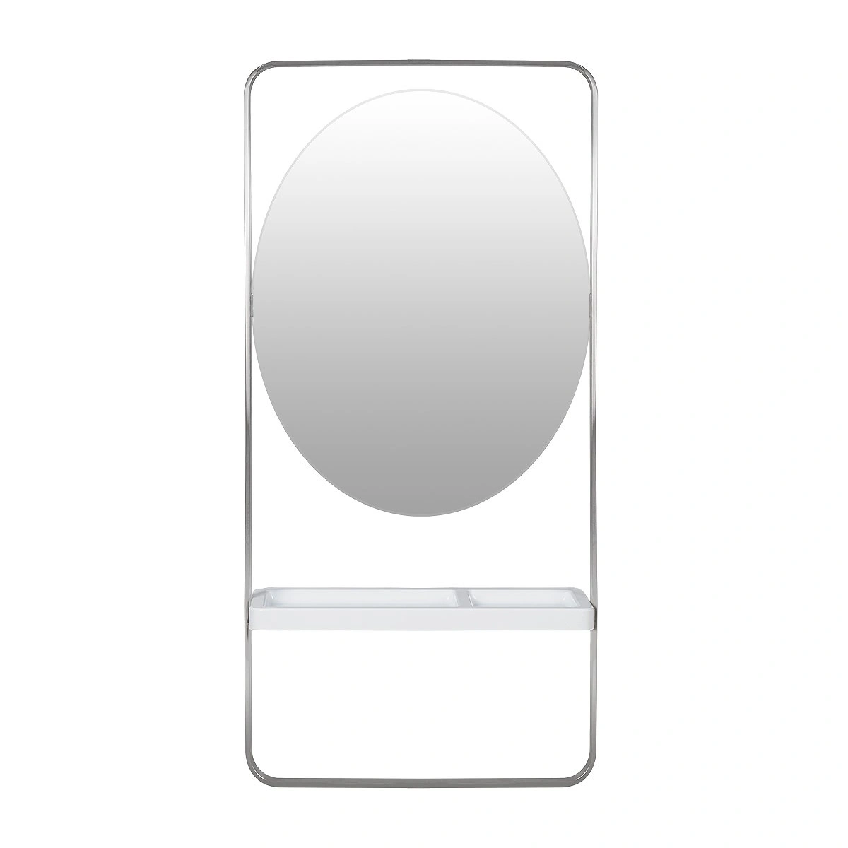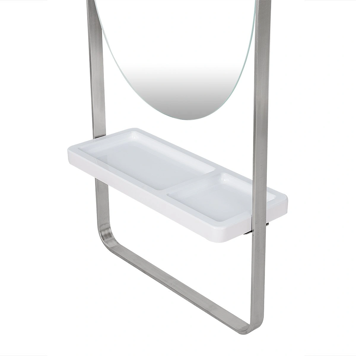 Стильное парикмахерское зеркало МД-090 поможет организовать рабочее место парикмахера для удобной и эффективной работы. Зеркало крепится к стене, каркас металлический полированный, на полочке легко поместятся необходимые в работе инструменты, косметика, расходные материалы, аксессуары и приборы.