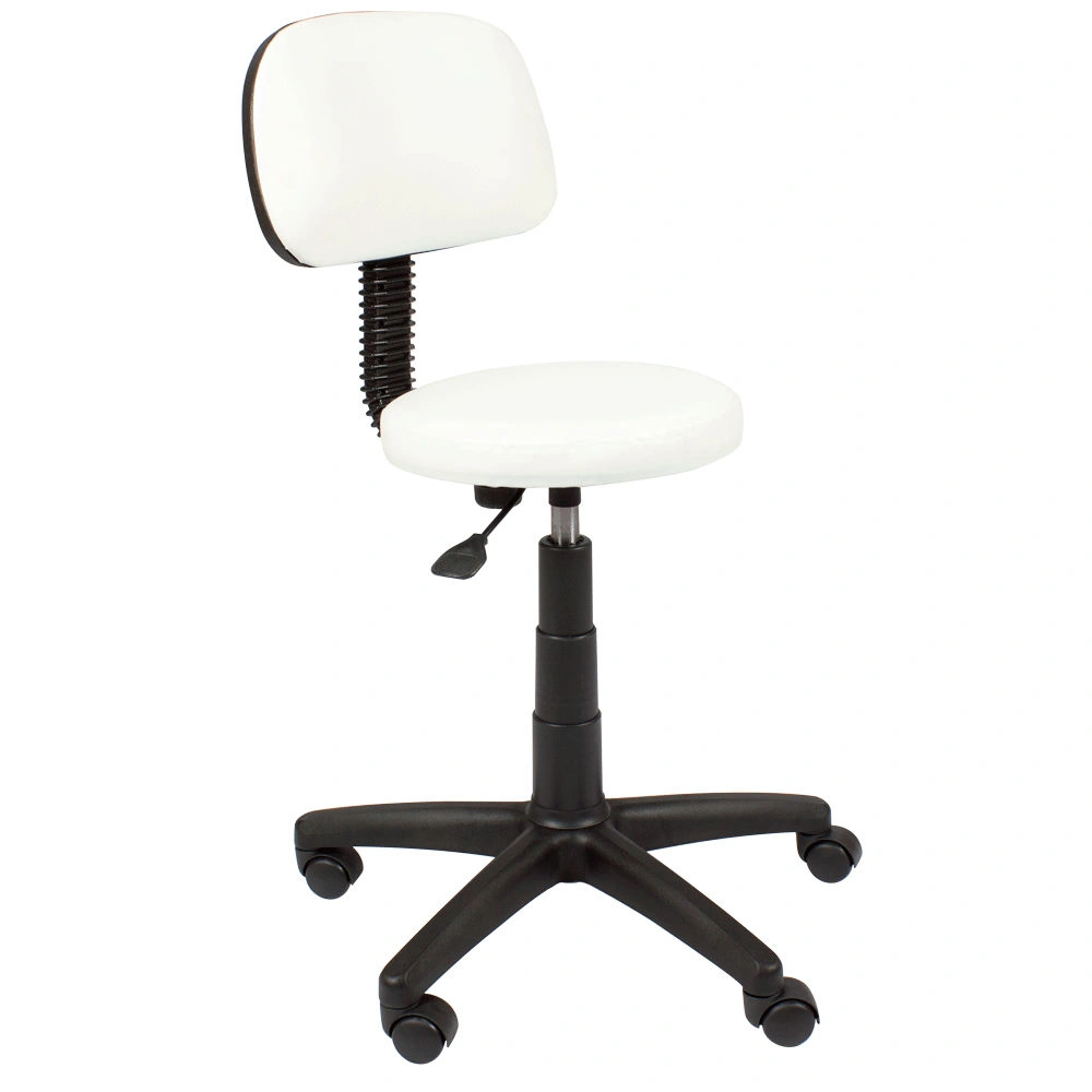 Стул мастера Астек низкий со спинкой относится к серии профессионального оборудования по доступной цене. Оно разработано для косметологов, парикмахеров, мастеров по педикюру и других специалистов бьюти салонов, с учетом специфики их работы. Удобная эргономичная спинка помогает снять напряжение с мышц спины, и не ограничивает движения при поворотах. Стул установлен на устойчивое основание в виде пятилучья на колесах, изготовленное из прочного черного пластика. Для регулировки высоты сиденья предусмотрена пневматика.