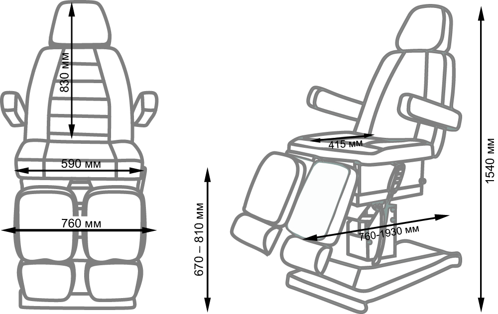 Педикюрное кресло Сириус-09 (Элегия-2В), 2 мотора, в магазине МЭДИСОН можно купить с такими размерами: